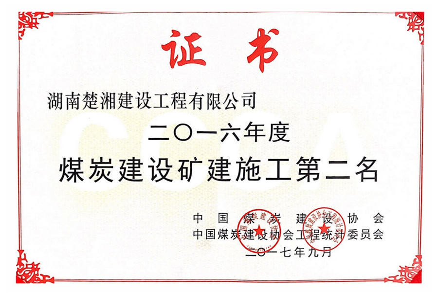 2016年度煤炭建設(shè)礦建施工第二名