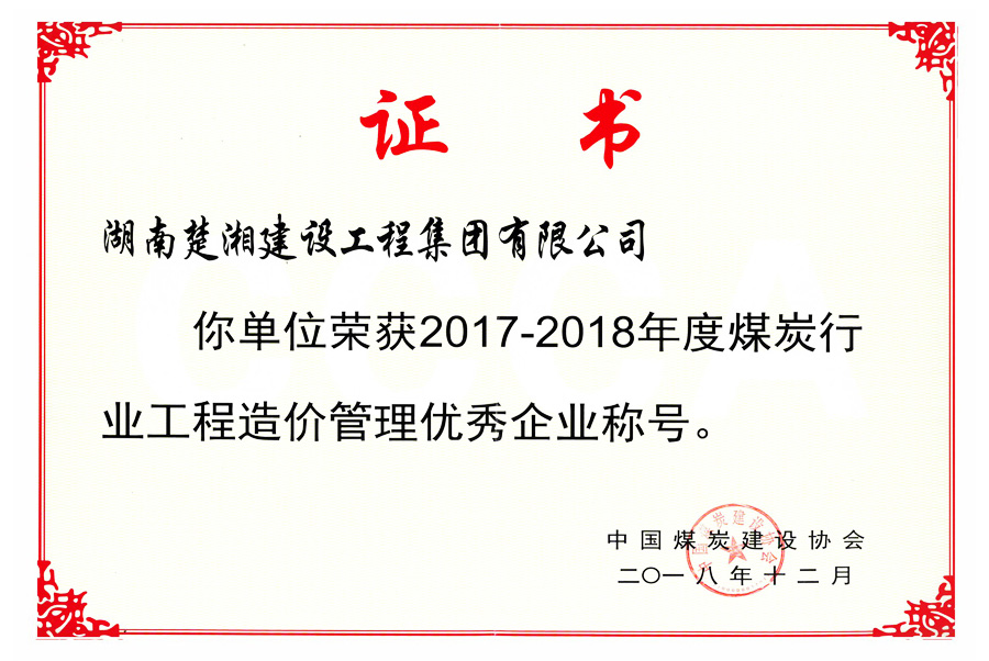 2017-2018年度煤炭行業(yè)工程造價(jià)管理優(yōu)秀企業(yè)